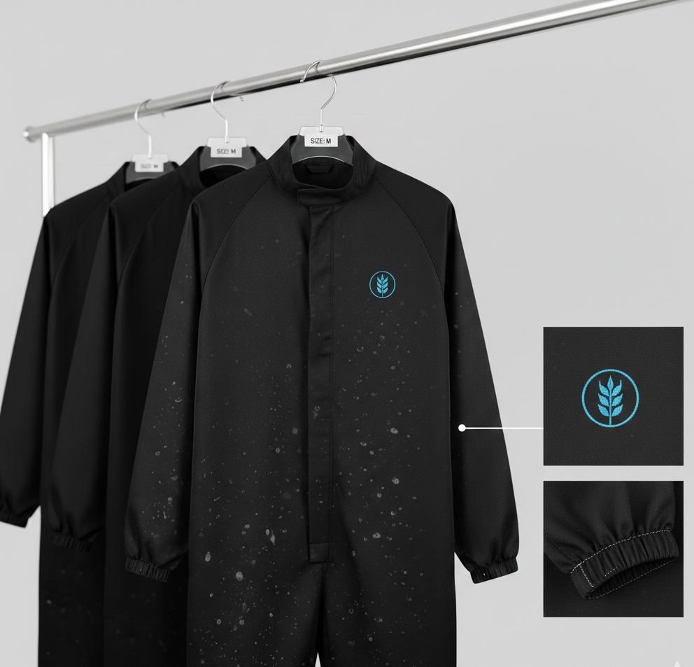Lightweight, protective coats designed to minimize contamination risk during production.