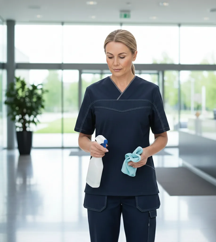 Our commercial cleaning uniforms are developed to reduce replacement frequency, standardize sizing across teams, and support structured uniform programs for growing cleaning businesses and facility managers.
