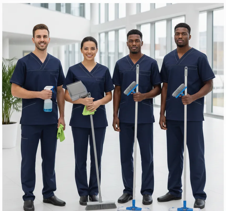 Commercial cleaning companies operate in demanding environments where uniforms must withstand frequent washing, chemical exposure, long shifts, and constant movement. Inconsistent sizing, rapid wear, and poor fabric retention increase operational costs and complicate workforce management.