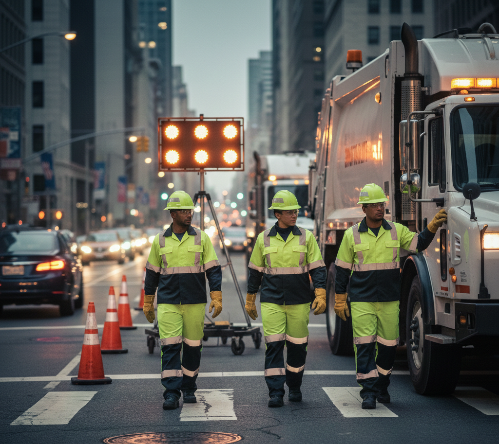 Reflective and visibility options to protect sanitation workers near traffic zones